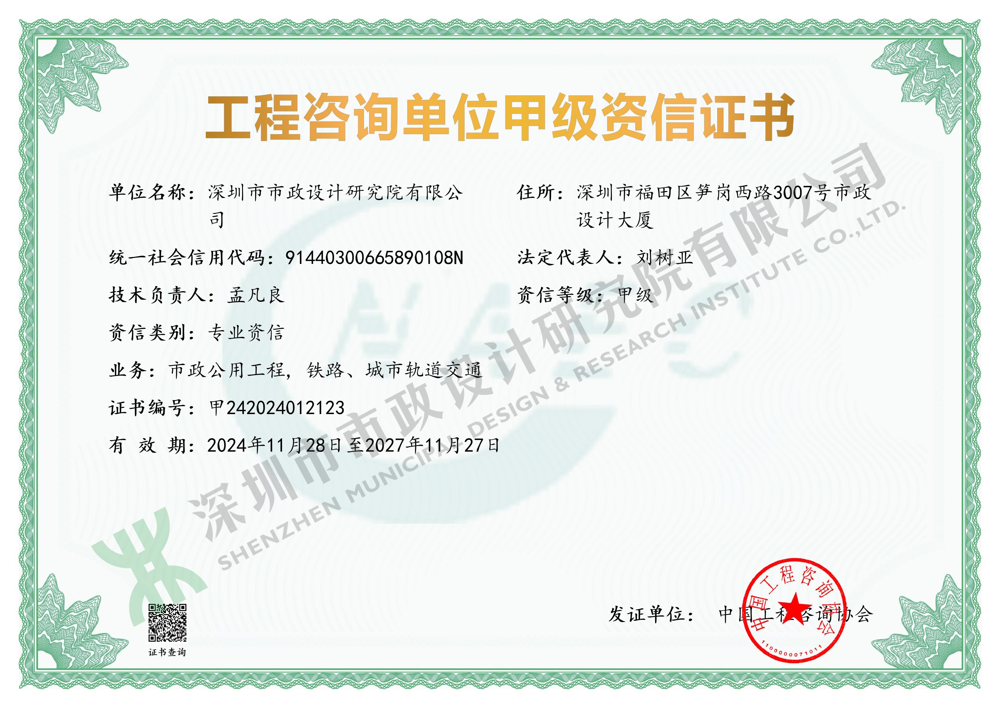 工程咨詢單位甲級資信證書